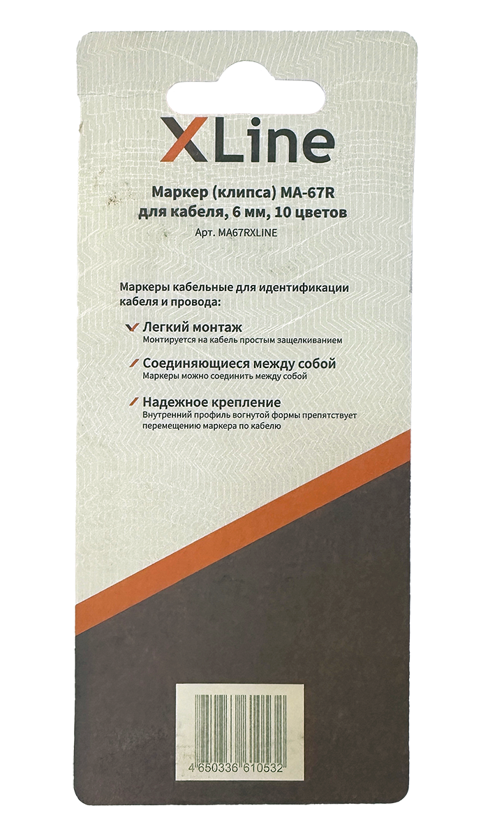 Маркер (клипса) MA-67R для кабеля X-Line, 6 мм, 10 цветов - предназначен для маркировки кабеля в распределительных щитах. Имеет маркировку 0-9, 10 цветов, диаметр кабеля 6 мм.