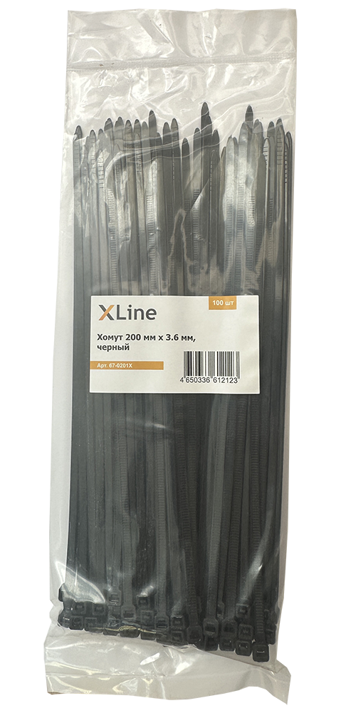 Хомут 200 мм x 3.6 мм X-Line, черный, 100 шт